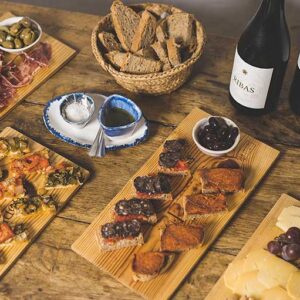 Visita guiada a la bodega y cata de una selección de 4 vinos, acompañada de un surtido de cocas mallorquinas, de pan moreno tradicional y aceite de oliva Virgen Extra Ribas con flor de sal.